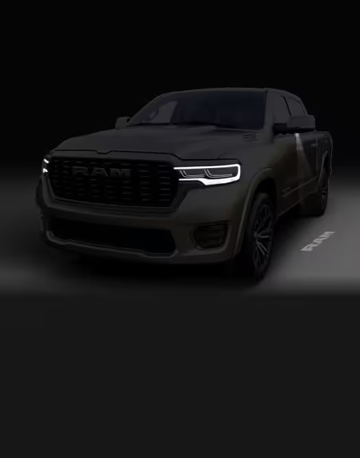 The 2026 Ram 1500 makes its appearance known with an available customizable LED walk up animation. An exterior light carpet also illuminates upon approach.