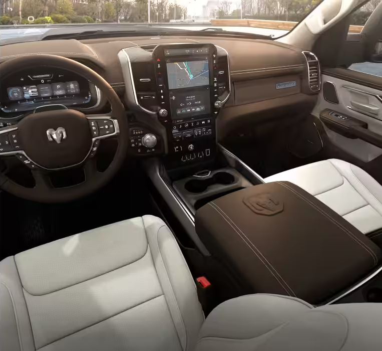 Keep your smartphones and devices charged up. The 2026 Ram 1500 keeps Class Exclusive available dual wireless charging pads within reach for both driver and front passenger convenience.