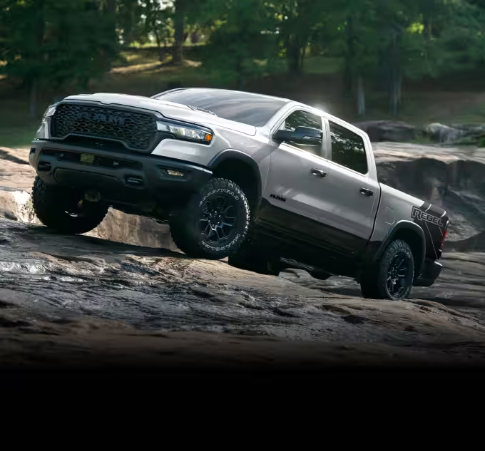 Get 33 inch tires, a 1 inch raised ride height, a lifted suspension and front and rear Bilstein performance tuned shock absorbers on the Ram 1500 Rebel.