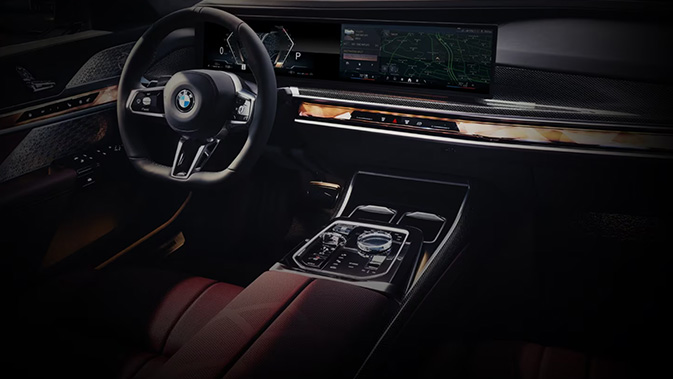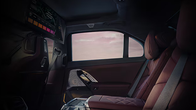 The elegant 5.5 inch touchscreens located on the inside of the rear doors let you conveniently operate the infotainment system, the available 31.3 inch BMW Theatre Screen, automatic air conditioning, seat settings, and more.
