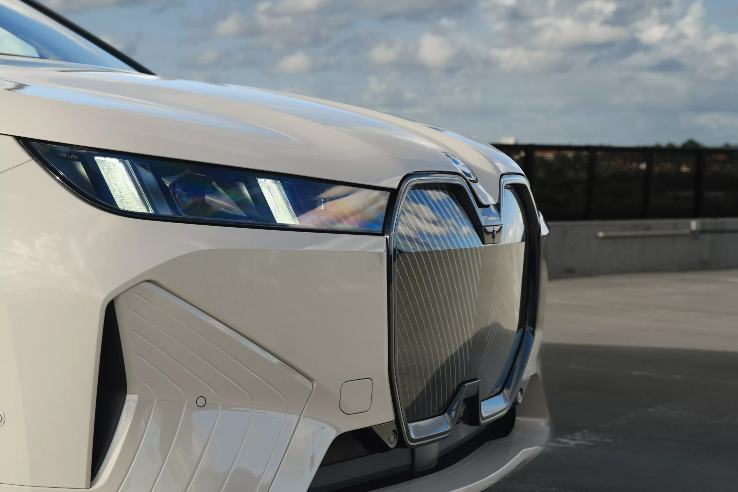 Complementing the vertical bars of the kidney grille, new vertical headlights give the front of the iX a clear point of view.